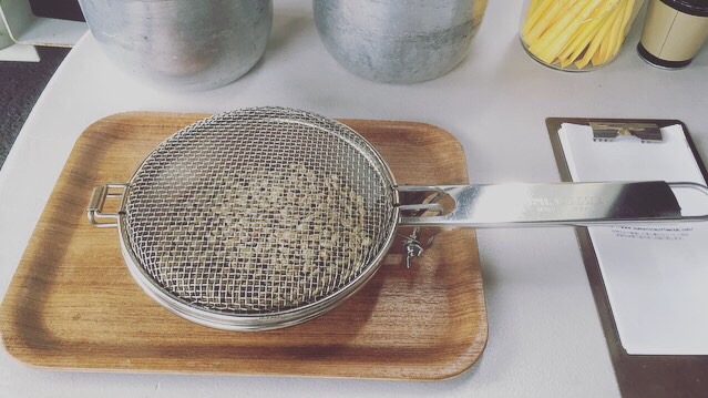 100gくらいの少量焙煎の時は手網焙煎で焙煎しています。