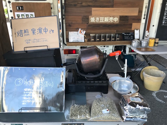 コーヒー焙煎の実演をしております。