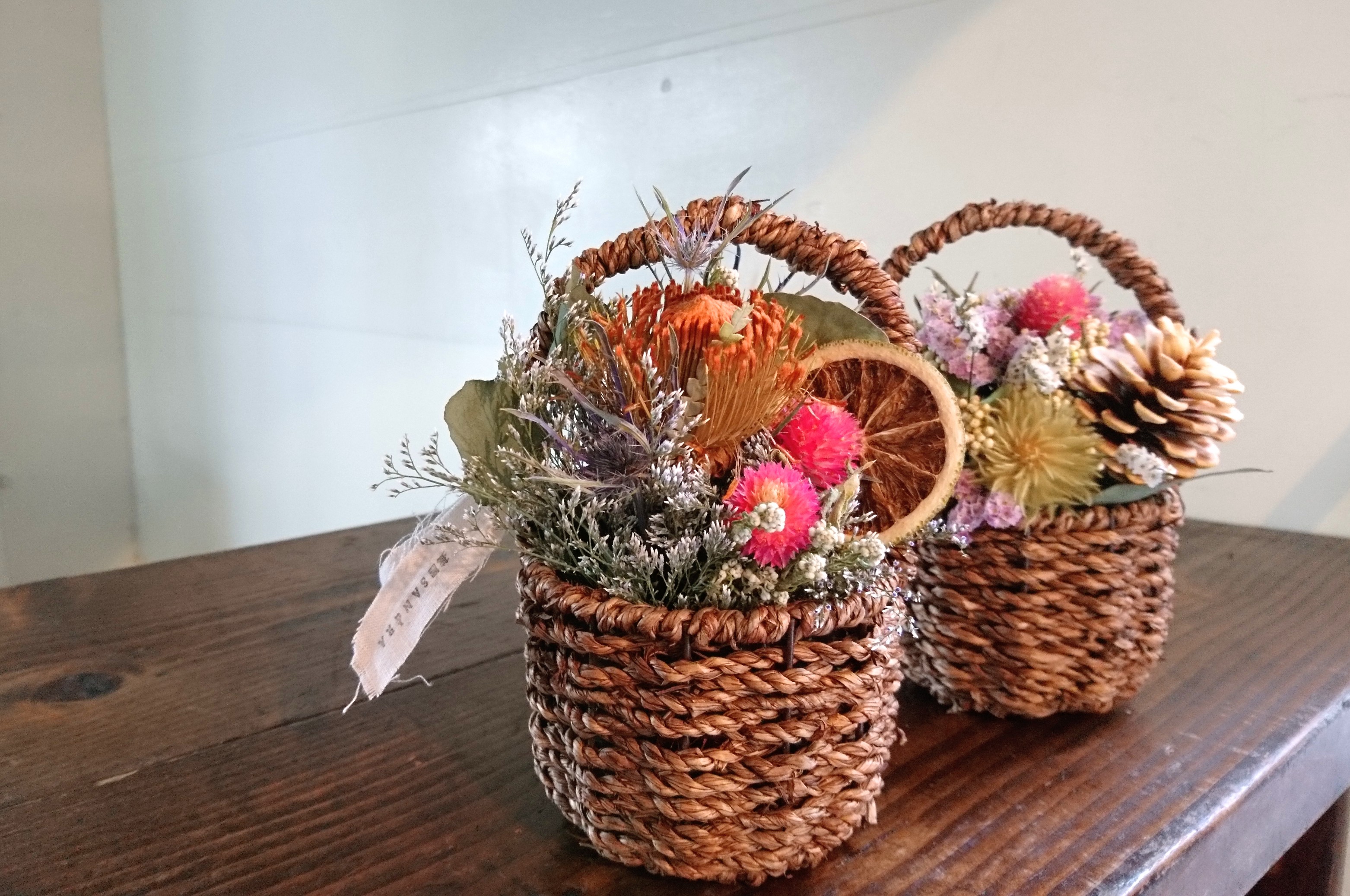 ドライフラワーが1番似合う季節、手間いらずにオシャレにほっこり飾れる花かごは自宅用やギフトにもオススメです!