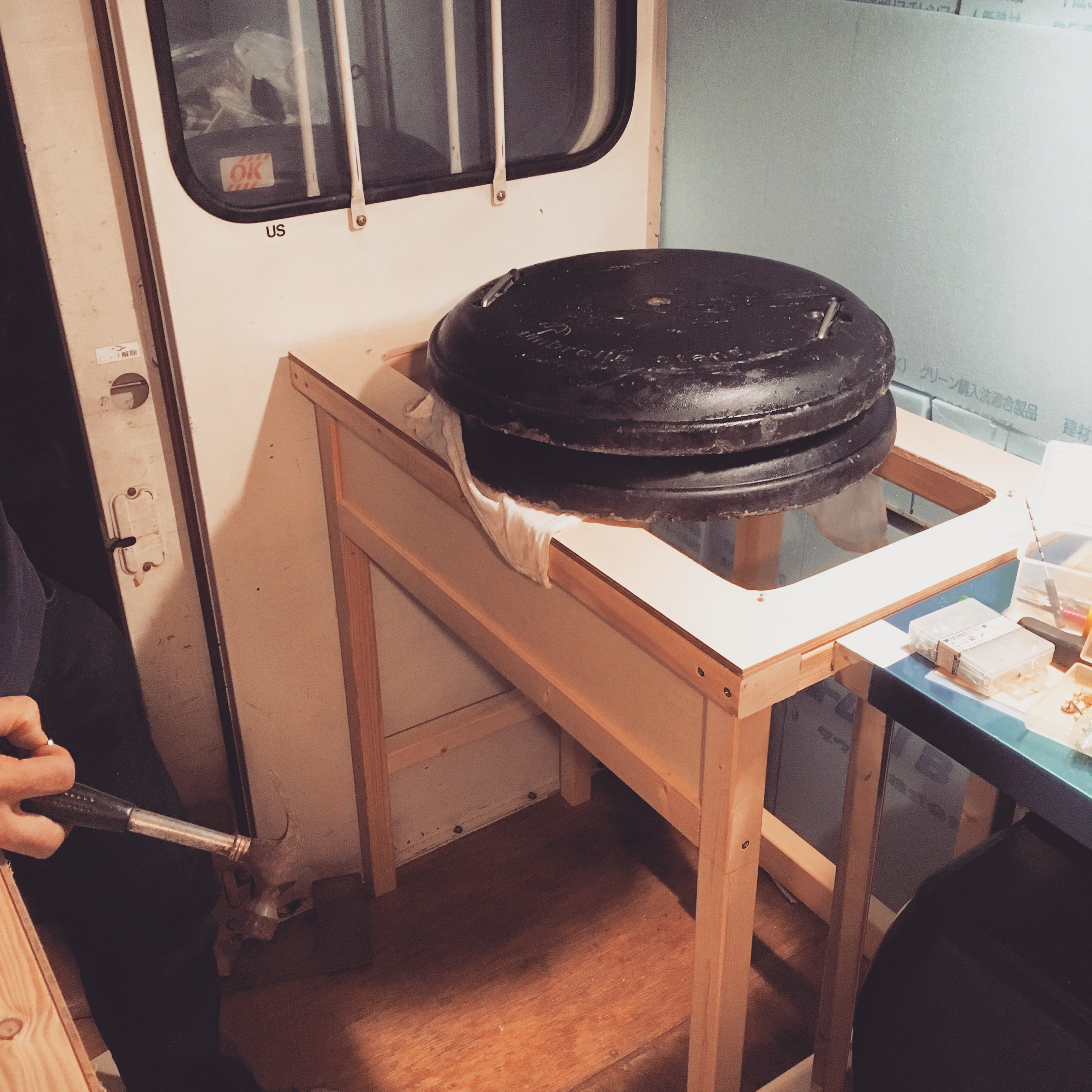 移動販売車リニューアルオープンに向けての内装工事 その5