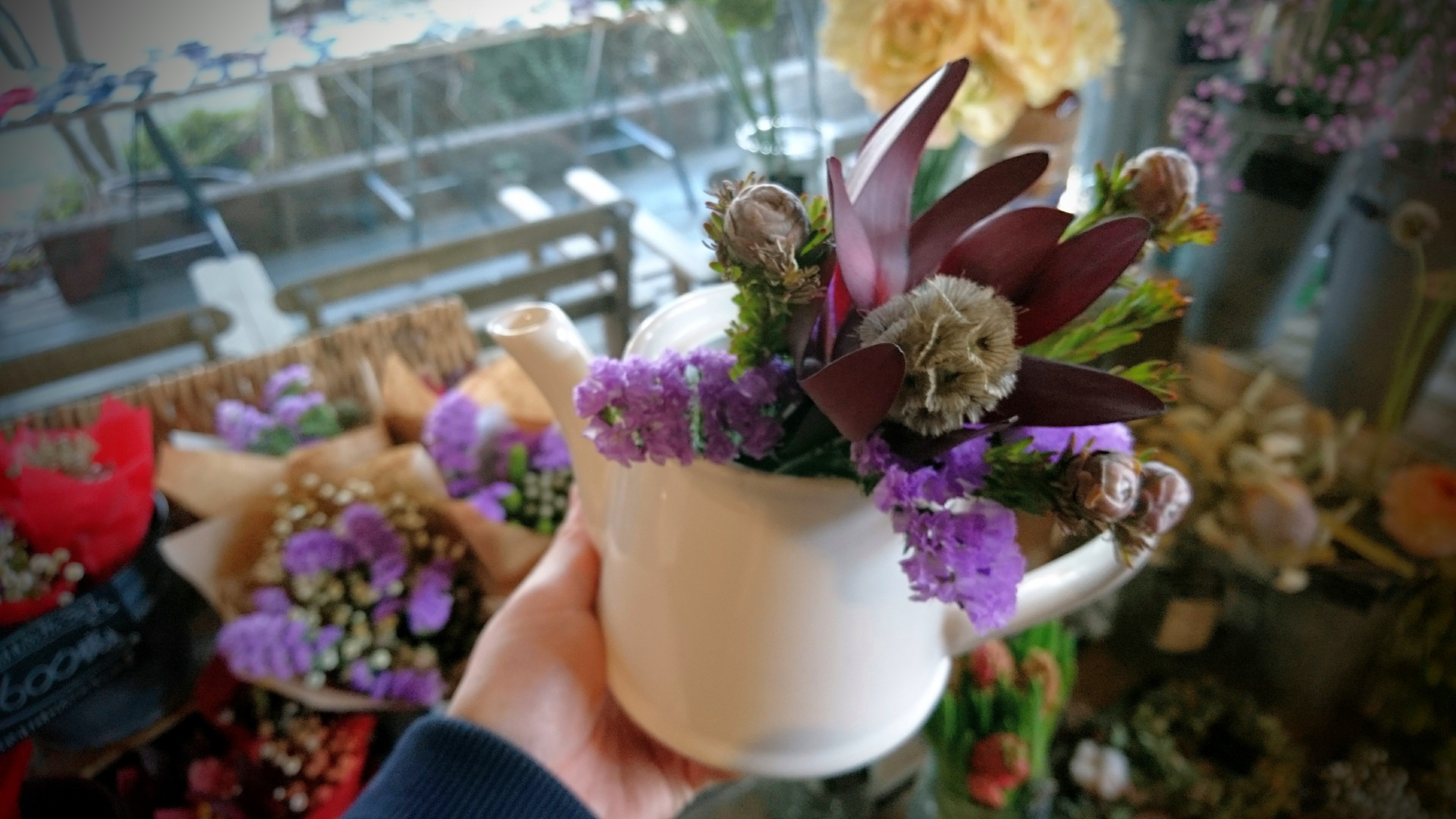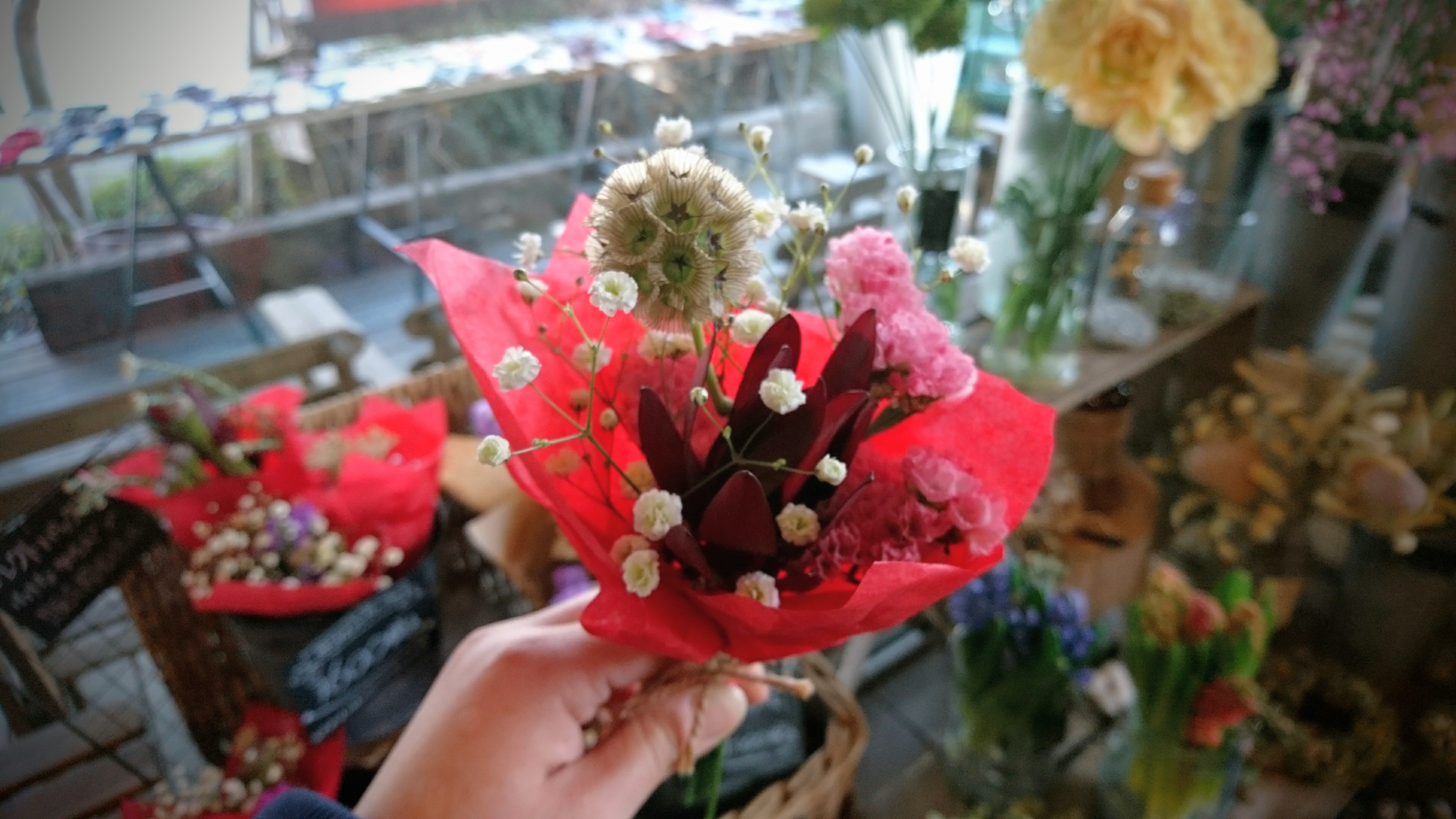 まだまだ寒い2月、花屋SANdRAは只今店内窓際にて営業しております(°▽°)