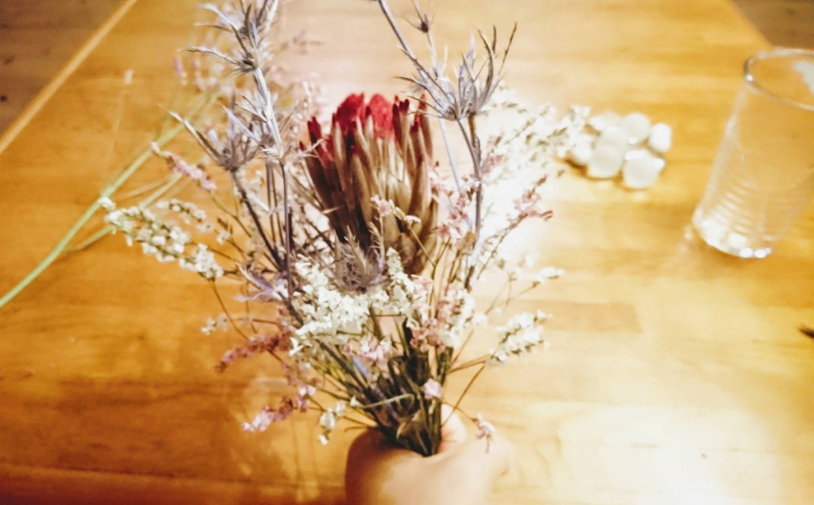 ドライフラワーは数種類をセットにした中から選べます。
