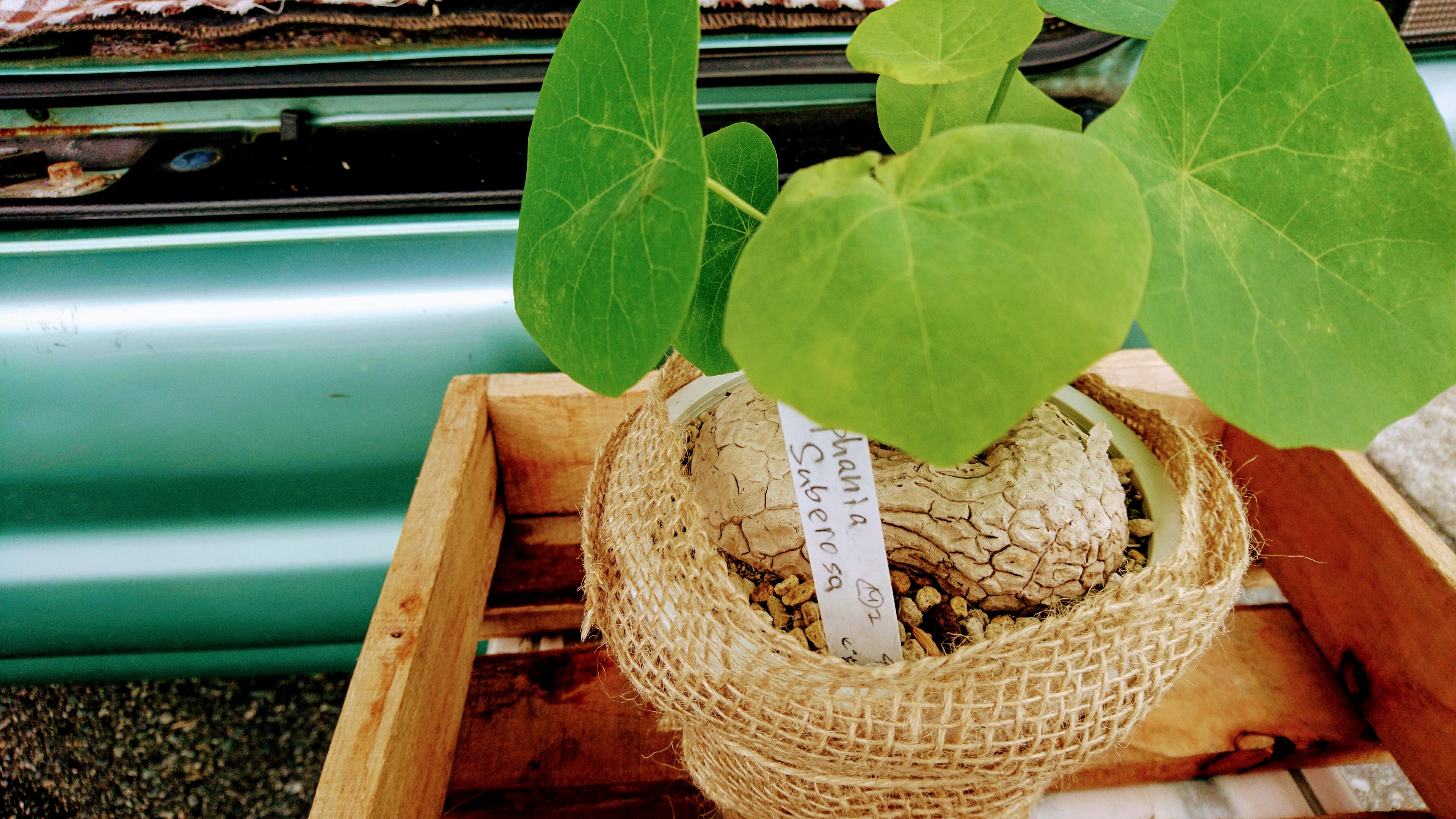こちらは、ステファニア スベローサという、幹がぷっくりとしていて、とてもユニークです!!葉っぱはとても柔らかく、なんとも癒される植物です。室内の明るい所用。