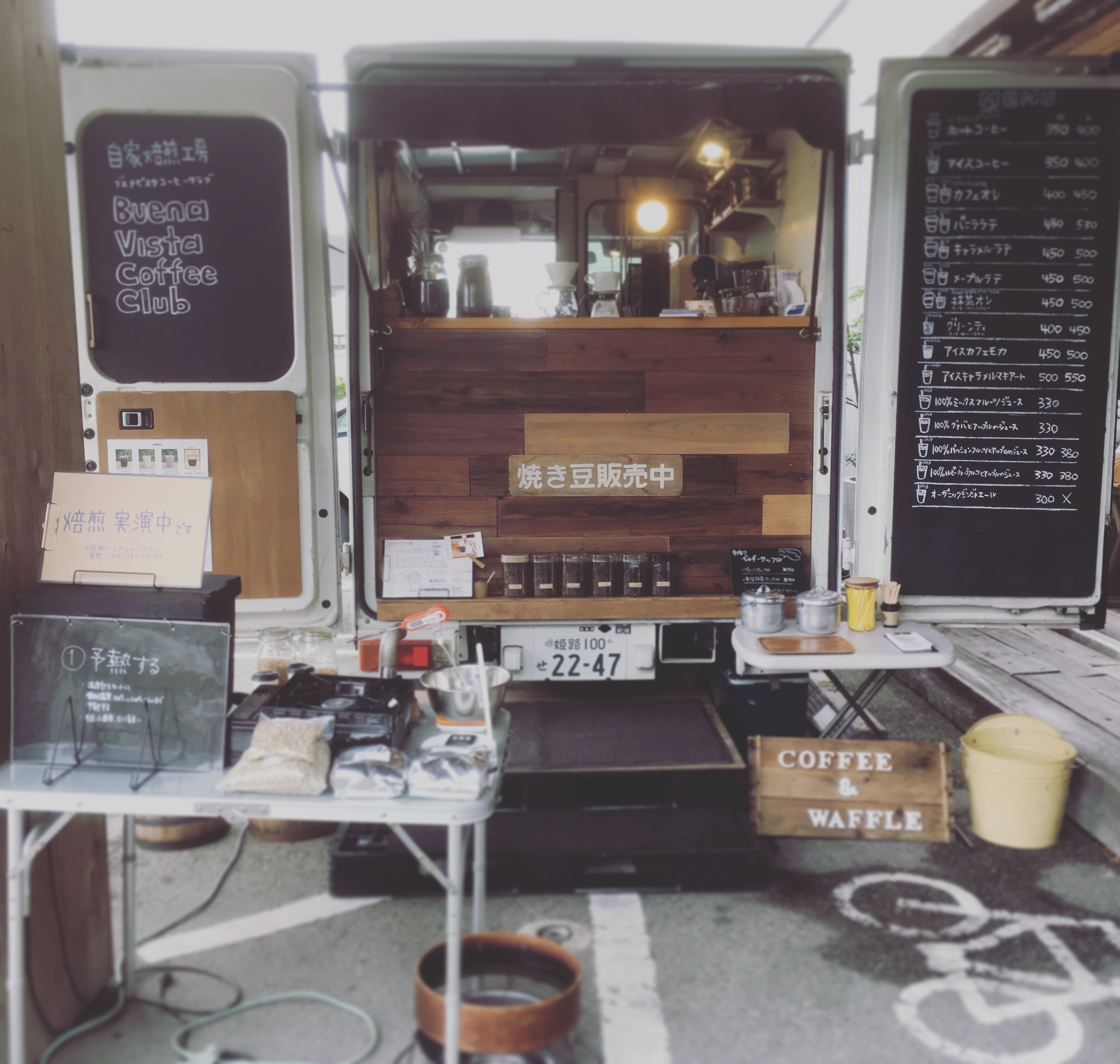 駐車場にてブエナビスタコーヒーの