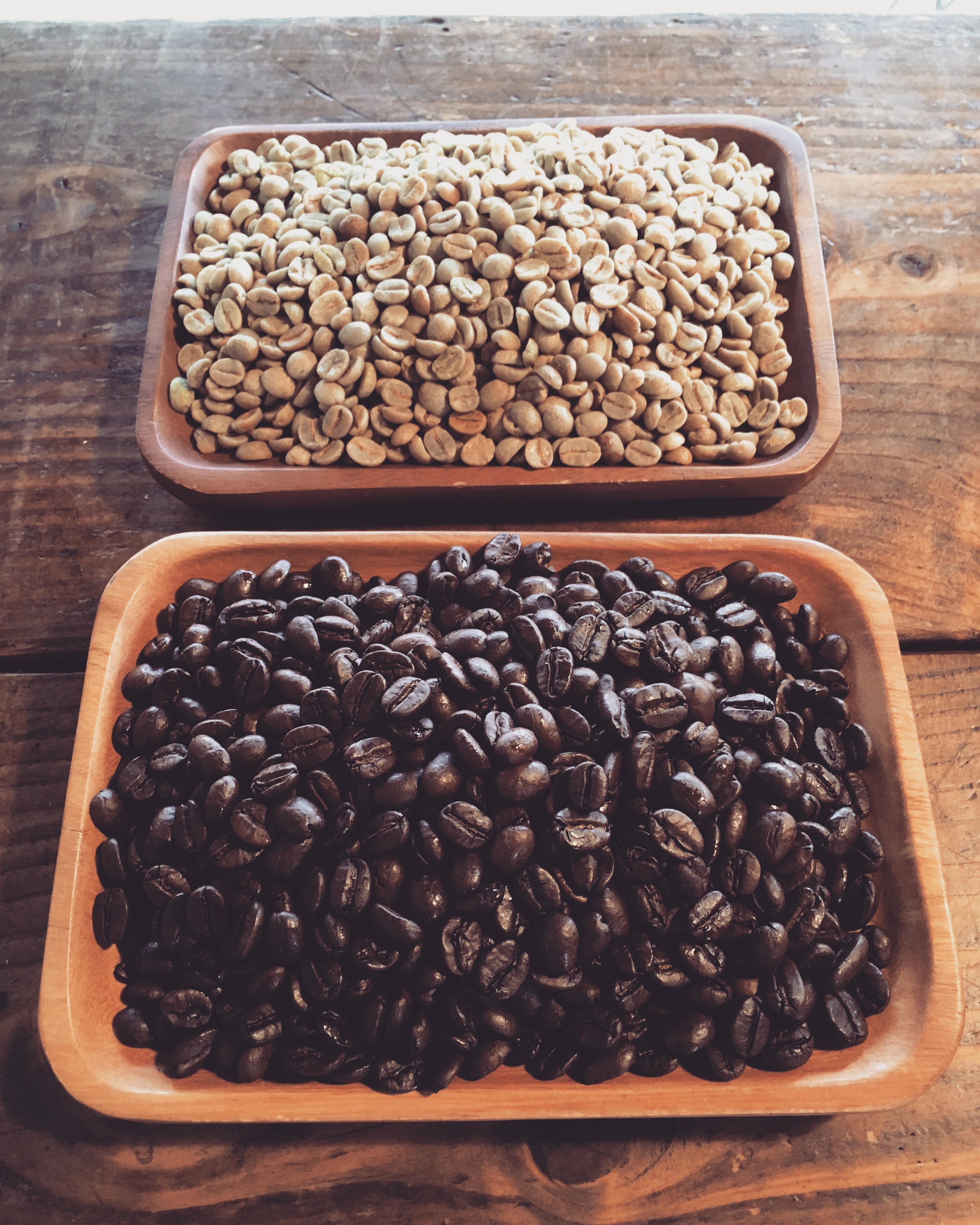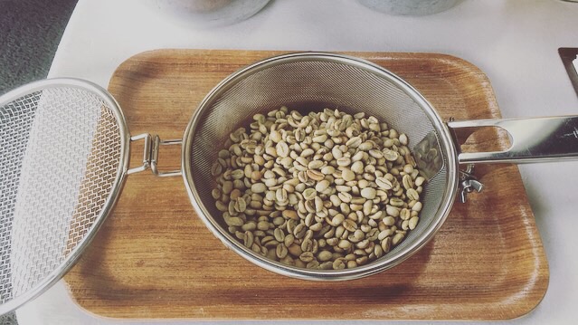 左上が焼く前の生豆