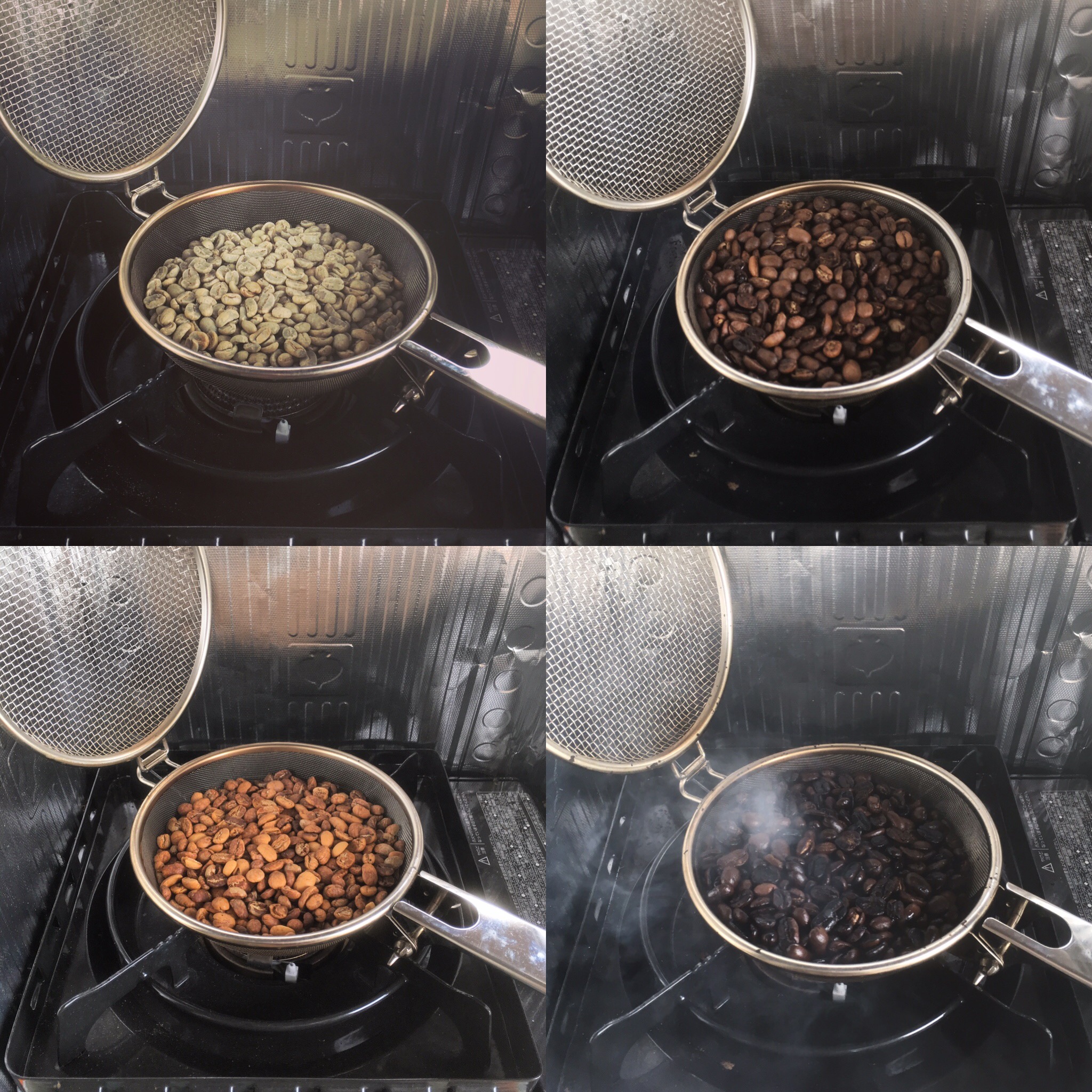 左下が焙煎から10分 1ハゼ始まる前